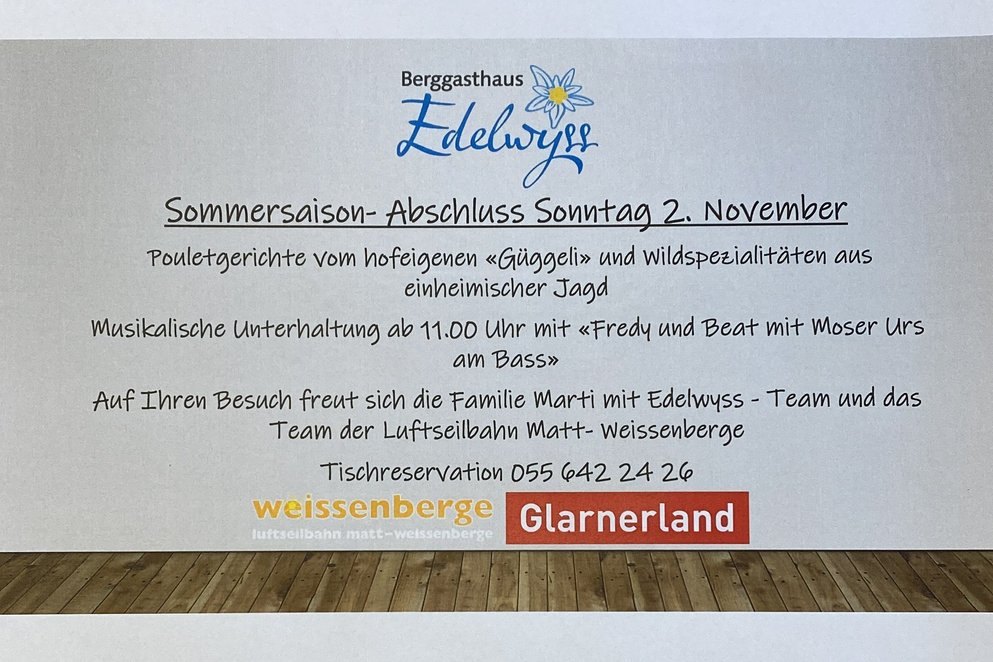 Tischreservationen Tel. 055 642 24 26